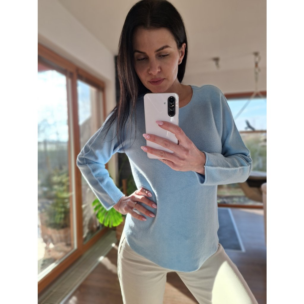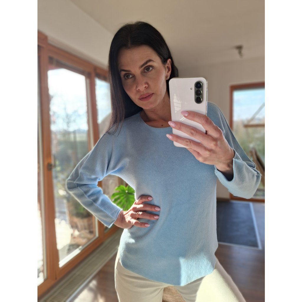 Prijemny svetrik ve svetle modre barve